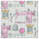 En söt syning mönster med syande maskin, tråd, måttband, töjning och mycket annat.