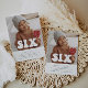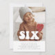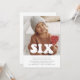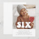En 6-års födelsedagsinbjudan med ditt eget foto och ordet 'sex' i ett groovy-typografi överst. Perfekt för din retro-inspirerade födelsedagsfest!