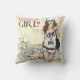 Stilfull dekorativ kastkudde med en sexig modeflicka i skissstil mot en stadsbakgrund.