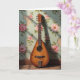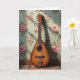 Vacker vintage ros tapet med en sexsträngad dulcimer lutad mot den. Vacker 'tänker på dig' -kort för musiker som gillar ovanliga instrument.