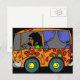 Gå tillbaka till sextiotalet med den här designen med en orange-skåpbil med typiskt sextio logotyper på den och som drivs av en man med långt hår. Färgfull och roligt.