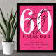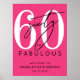 Fira med stil med denna moderna varmröda fantastiska födelsedagsinbjudan, perfekt för ett "Sextio och fantastiskt" tema eller någon annan milstolpsfirande. Designen har en stor vit "60" högst upp med ordet "sextio" skrivet i elegant svart skrivstil lagt över den. Nedan visas "fantastisk" i en fet svart sans-serif-teckensnitt för en ren, modern finish.