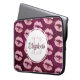 Laptop sleeve med trendig rosa faux-glitter läppar. Bakgrunden är en mörk rödaktig rosa mönster med tropiska handflatan löv.