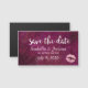 Spara datumet med trendig rosa faux-glitter läppar. Bakgrunden är en mörk rödaktig rosa mönster med tropiska handflatan löv.