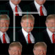 Bild från porträtt av president Donald Trump, där mönster om tyg upprepas. Snyggt och modern utformning. Fira vår president eller skapa något till bäran vid ett möte i kampanj med detta festliga spår av trasa för syd och hantverk,
