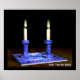 En digital återgivning av belysta shabbatljus; de ljus och plattor på vilka de vilar har ett tjockt mönster. Lägg till din egen text. På Shabbat (Sabbat - lördag) observerar Judar en dag av fullständig vila. Genesis beskriver hur Gud, efter att ha skapat Heavens och Jorden på sex dagar, vilade den sjunde. Som alla judiska dagar börjar Shabbat vid solnedgången, för Genesis Ch. 1 lyder: "Och det var kväll, och det var morgon, en dag." Av detta drar vi slutsatsen att en dag börjar med kväll, det vill säga solnedgång. Skabbatljus tänds och en välsignelse erhålls senast 18 minuter före solnedgången. Denna ritual, som utförs av kvinnan i huset, markerar officiellt början på sabbaten. Följande välsignelse: Baruch a-ta A-do-nay Elo-hei-nu me-lech ha-o-lam a-sher ki-dee-sha-nu bi-mitz-vo-tav vi-tzi-va-noo li-had-leek ner shel Sha-bbat Translation: Blsed are You, Lord our our, Ruler of the Universe, som Vi har sanktionerat oss med kommandon och beordrat oss att tända shabbatljus.