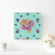 Shabby Chic Aqua Rosor Blomma Turkos Fyrkantig Klocka