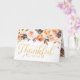 Det här Shabby Chic blommiga ros-kortet har en fin akvarell-persika och orange kant längst upp. Färger som använts är olivgrön, rost, persika, plommon och orange. I mitten finns stilisera text i guld som lyder "Tacksam för Dig". Insidan har en blommig ros-kant längst upp och längst ned med utrymme för att skriva ditt eget meddelande. Allt visas på en krispigt vit bakgrund. Detta kort koordinerar med samlingen Give Thanks Floral Pumpkin. Matchande kuvertfoder finns också tillgängliga. *Guldbokstäver är inte folie*