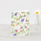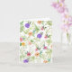 Det här hälsningskortet för Blommigt i Shabby chic har rosa blommor, gula blommor, lila blommor och rödblommor på fält i löv i grönt.