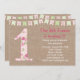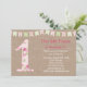 Inbjudan för födelsedag för shabby chicstil första med det gulliga buntingbanret på en burlapbakgrund. Denna inbjudan har ett stort att numrera 1 med ett härligt shabby chicmönster.