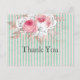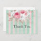 Söt och feminin shabby chic tack för att du har ett kort med stor bukett av rosa ros och andra blommigtar med ro guld löv i bakgrunden av ett mint och blek rosa rand.