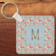 Den här engrammade nyckelkedjan för blommigt har en vacker shabby chic inspirerad mönster av ro och blommor i mjuka nyanser av rosa, grönt och grädde på blått. Anpassa monogrammet på framsidan och texten på baksidan med ditt val av namn, initial- och kontaktinformation.
