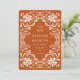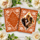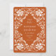 Spara-till-datum-kortet före bröllop har en vattenfärgsgrafik av en vacker vit blommigt ram. Bakgrunden är en varm, jordisk orange färg. Formuleringen på framsidan och fotot på baksidan kan lätt anpassas eller bytas ut. Perfekt för en elegant vintage eller ett modernt börsbröllop mellan och stil, liksom bröllop under vilken säsong som helst.