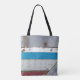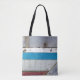 Blå, vit och röd tryckfärg på det avvanda grått-träet mönster.