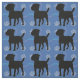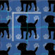 En svart skuggsilhuette stil Jack Russell Terrier (JRT) Parson skapar en söt hund för att göra ditt hjärta lycklig. Hund är på blå bakgrund med tass avtryck och spår i grått, rosa och blått. Utformning av Diane Blackman.