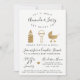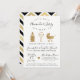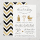 Denna Shake Rattle and Roll Baby Shower-inbjudan är en modern version av ett klassiskt tema. Denna baby shower-inbjudan är perfekt för blivande mödrar, par shower och blöjpärlor. Designen har svarta och falska guldelement med ett chevron-bakgrund för en vacker modern känsla.