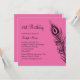 En lätt, luftig påfågelsfjäder pryder denna inbjudan på ett chic, nytt och modernt sätt. Den visas på det vanliga papperet; jag rekommenderar dock tyngden och texturen hos linnepapper.