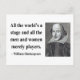 "Hela världens scen och alla manar och kvinnor bara spelare" - William Shakespeare.