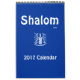 Denna ensidiga kalender för 2017 har en blå tråd och olika blå tonbakgrunder med ljus samt hebreiska uttryck "Shalom" och judiska händelser och helgdagar på alla månadssidor. Det är en unik dekoration för eleganten för ditt rum och en underbar gåva till dina nära och kära också. Du kan också matcha den med andra tillbehör till dekorationen.