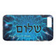 Mörkens text som läser &citat;Shalom" (hebreisk: fred) som läggs ovanpå en ljusblå avtrycksbild. Lägg till ytterligare text.