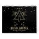 Golden-symboler på en svart bakgrund med färgstark stjärna mönster. Symboler som ge av positiv energi och som är konstruktiva är nu välkända för många människor från helig geometri. Här har de kombinerats med en schampanisk symbolik, som inte bara har en visuell utan också energiskt positiv effekt på varje rum där kalendern hänger.