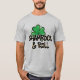 Den här roligten är grafitliknande t-shirt-designen levereras med den färgstarka "Shamrock and Roll"-texten och den är gjord för St. Patrick's Day firande.