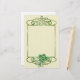 En snygg stationära med irländskt tema har en söt bukett av Shamrocks som är bunden med matchande band på lätt texturerad gräddbakgrund med en lätt snurrande grönt gräns.