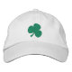 En grönt Shamrock för tur på irländarna på en broderad hatt