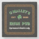 Personlig Irländsk pubsten underlägg med grönt och orange typsnitt, en orange knot gräns som sätter upp texten, ditt namn i böjd text ovanför en schamprock med året fastställt och namn i din pubar under. Lägg till en slogan för roligt som visar vibden från din irländska pub!