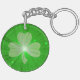 En modern utformning som ger en skamrock på en "glödande" grönt. Nyckelkedja med en utformning av anpassadet som du kan anpassa med din egen text, bilder och dina idéer. Observera att denna design har skapats med hjälp av originalfotografier och digitalteknik av Jess Perry, och att den skiner eller innehåller riktiga gnistor.