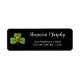 En returadressetikett med grönt schrock och guld Irish harp och ditt namn i ett modernt kalligrafiskript.