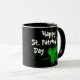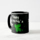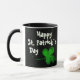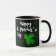 Shamrock Klöver Irish Lycklig St. Patrick's Day Mugg. En Lycklig St. Patrick's Day-text med grönt Irländska schack för tur mot svart bakgrund. Du kan ändra texten.