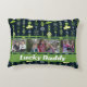 "Lucky pappa" S:t Patrick Dag-kudden. Anpassa den här charmerande designen så att ett lyckligt far kan visa sina barn. Perfekt för ett nytt, modernt, modernt estetiskt. Cute-schampor, fyralöv klöver, blommor och löv som arrangeras i rand utgör detta härliga mönster. Vackra gröntar och gulter med muterade blues gör detta till en levande men sofistikerad och öga-fångstdesign. Anpassa den här kudden med sex (6) foton - tre (3) på framsidan och tre (3) på baksidan. Anpassa texten längst fram och bakåt. Byt pappa till Pappa, Pop, Pappa, Far, Pater eller namn.