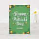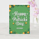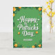 Designad med en rik smaragdgrön bakgrund fokuserar denna St. Patrick’s Day-hälsning på ett kärleksfullt budskap avsett för en make, med en varm och hjärtlig ton 💚. I mitten visas ”Happy St. Patrick’s Day” i stora vita bokstäver med mjuk skuggning som får det att se ut som om det är något upphöjt från ytan. Strax under står ”MAKE” med vita versaler i en rak sans-serif-stil som känns direkt och tillgiven. En kant av lagerblad och fyrklöver i flera gröna nyanser omsluter kanterna som en lövrik ram som drar budskapet nära ☘️. Mellan klövren tillför små orange-gula blommor och små runda prickar en ljus kontrast, som små gnistor runt en gemensam firande. Det gröna och orangefärgade paret anspelar också på irländska färger, vilket ger scenen en festlig och mysig stämning utan att tränga ihop layouten. Längs ytterkanten över