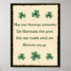 Shamrocks Irish Blessing har grönt text, som lyder: "Må dina välsignelser överträffa de schockar som växer och kan göra det svårt att undvika dig var du än går." Shamrocks dekorerar toppen och grund, målade av Linda Baysinger Peck. © Linda Baysinger Peck Med reserverade Höger
