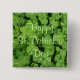 Knapp med grönt-schampar-bakgrund med ord "Lycklig St. Patrick's Day"