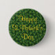Knapp med grönt-schampar-bakgrund med ord "Lycklig St. Patrick's Day". Text är anpassade.