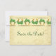 Elegant bröllop Spara datum-kort med shamrocks och gulda hästsko kant för irländska symbolen för tur. Mjuk gyllene kräm nyans bakgrund med subtil blomster motiv. Anpassa baksidan av Spara datum-kort med din information. Underbart tema för ett vår- eller irländskt bröllop. Matchande tema tillgängligt på feta visitkort i min butik.