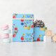 Underbara mönster för inslagning av Rosh Hashanah-gåvor. Shana Tova med traditionella judiska symboler på baby blue bakgrund.