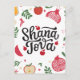 Celebrate Rosh Hashanah med det här trevliga "Shana Tova" vykortet med handskriven typografi omgiven av festliga frukter och löv. Äpplen, granatäpplen och grönt ram i hälsning på ett lekfullt och dynamiskt sätt. Detta vykort fångar glädjen och värmen i det judiska nyåret och skapar den perfekt som krävs för att sända välsignelser av sötma och förnyelse till vänner och familj. En uppriktig väg till tradition och kärlek i julhelg.