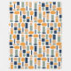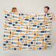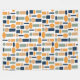 Denna stora filt har en modern utformning i mitten av århundradet av ovaler och rektanglar i mönster som upprepas i utformningen.