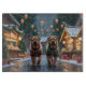 Denna festliga design fångar den glada känslan av semestern, med en bedårande hundar.Boende i en vintersaga, komplett med ett dekorerat julgran, och vackert inslagna presenter. Snöflingor faller försiktigt, vilket ger en magisk touch till scenen, medan de levande färgerna på semesterdekorationerna skapar en varm och glad atmosfär.