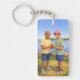 A fun, cool and relaxing key chain image of sharing some fries by the lake on a beautiful sunny day in summer.