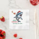 En festlig papper napkin som har en glad haj med en julhatt, omgiven av helgdag-temerade dekorationer som snöflingor och polkagrisar, perfekt för att ge dig en lekfull beröring till din bord.