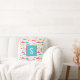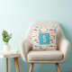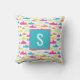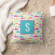 Enkelt men sött mönster-kudde i akvarium, rosa, orange, gult och mynta grönt med monograminledning.