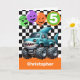 En personlig Halloween 5-födelsedagspresent för pojkar. Med en svart och vit bakgrund på framsidan med ett ställe kan du enkelt anpassa åldern vid behov. Ett blåhajmonster lastbil med Halloween inslag kommer att glädja all haj och monstret lastbil fläkt. Överraskning! Det finns en barn i roligten som säkert kan le på födelsedagstungens ansikte. Ett finstilt val av ett unikt halloween-födelsedagskort för din son, barnson, brorson osv. Anpassa och lägg till din vagn i dag!