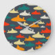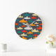 Enkelt men sött mönster-klocka i marinfart, teal, rött, orange, gult och grått.