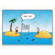 Din ! Denna lustiga tecknad visar två slott som leker volleyball på sina egna personliga öar med ett hav av hajar som väntar på en till kom efter en herrelös boll! Med rubriken "Din ". Lustigt och vackert med coola blå hav och himmel.
