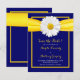 Vit shasta margarita, gul band och navyblå bakgrund bröllop save the date-kort. Färgerna på detta margarita-bröllop save the date-kort är ljust marinblå eller kunglig blå, gyllene gul och vit. Navyblå, vit och gul margarita bröllop save the date-kort.