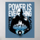 Kolla in den här bilden av dr Sivana som håller 8 Boll, med silhuetterna av de sju dagstidningarna över bröstet. Orden "Power Is All" är skriven i vitt och svart bakom honom.
